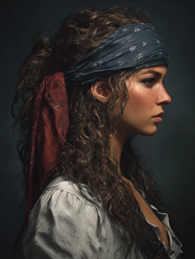 Perfect for cosplay, pirate-themed events, or photo shoots. Minimal maintenance; simply tie or weave the scarf into hair. Enhances the adventurous, swashbuckling aesthetic.