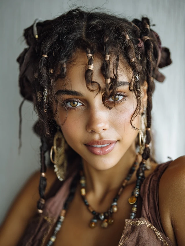 Small accent braids combined with beads or charms enhance pirate flair. Works for oval or heart-shaped faces, with medium-length hair preferred. Curly or wavy hair holds braids better, but straight hair can be braided as well.