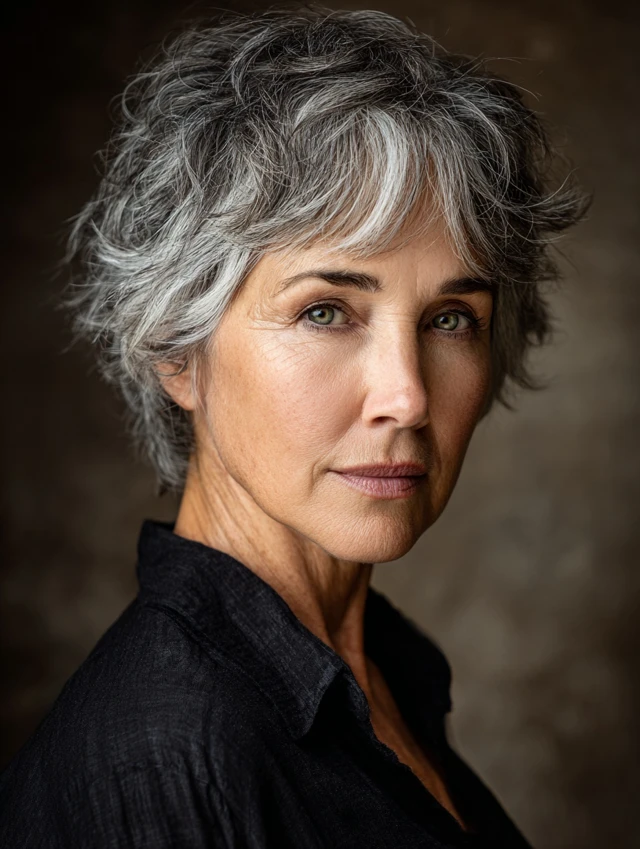 Salt and pepper hairstyles add natural dimension that flat, single-tone colors often lack. The mix of gray and darker strands creates visual depth, making hair appear thicker and more textured. This is especially helpful as hair becomes finer with age.