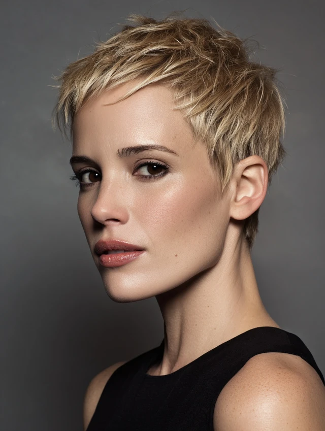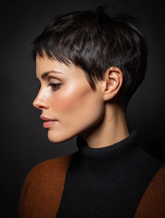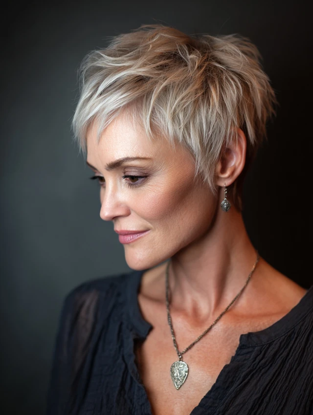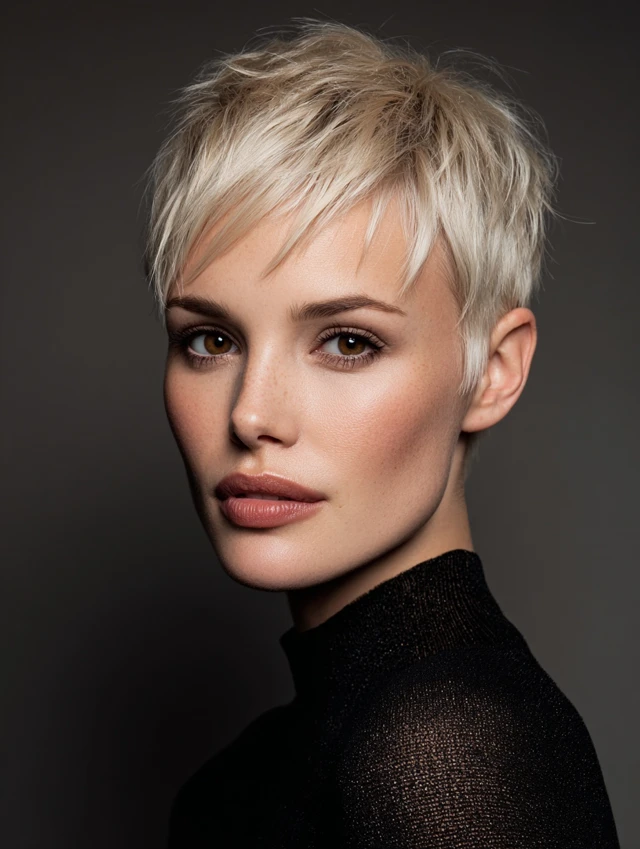 A textured pixie cut brings lift at the crown and soft pieces near the temples, which distracts from shrinking hairlines. The trick is texture—rough, piecey layers add volume and move hair forward instead of backward.