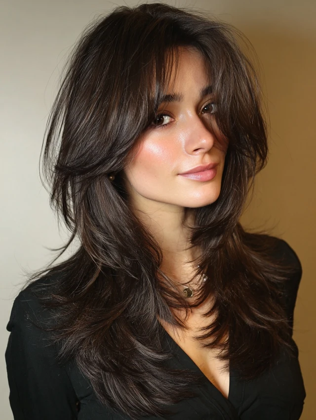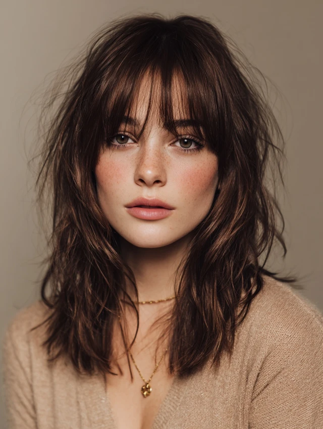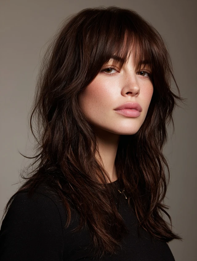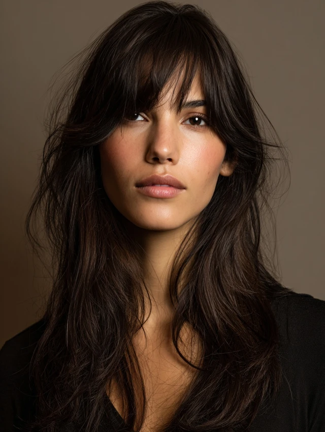 Curtain bangs blend softly into the rest of the haircut, offering gentle frontal coverage without heaviness. They cradle the forehead, soften features, and work with most textures. Pair them with shoulder-length or long layers for balance.