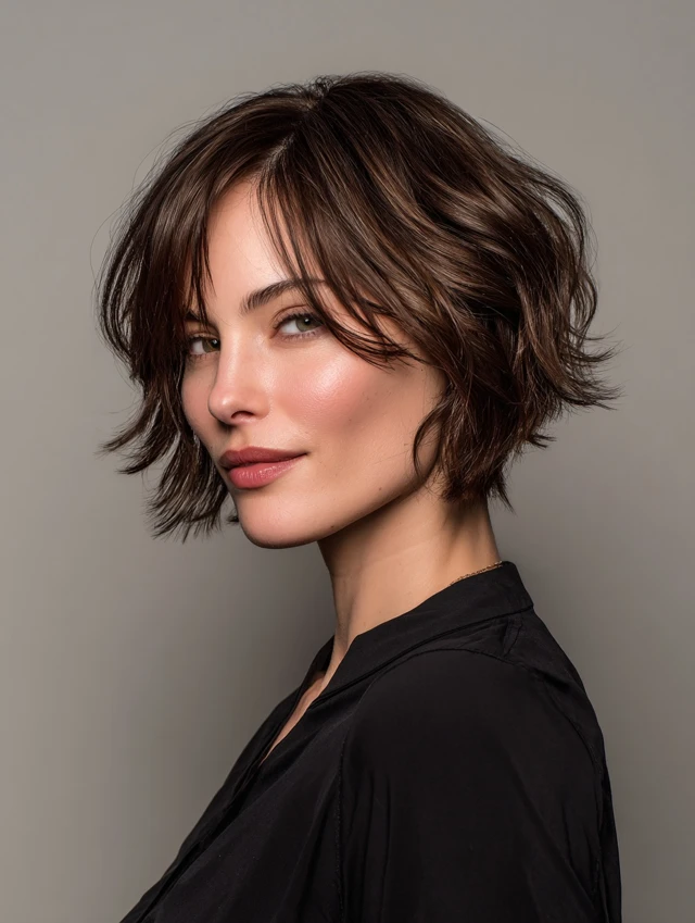 A layered bob around the jaw or collarbone creates movement and volume without heavy styling. It flatters most face shapes and works well for fine to medium hair.