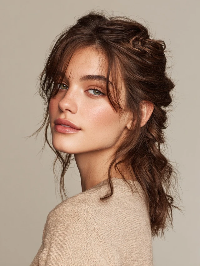 Use a clip or elastic and lightly lift the crown. This style turns rushed hair into something that looks planned.