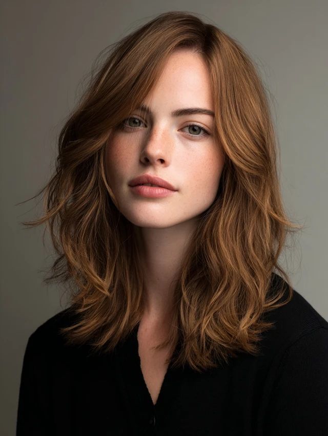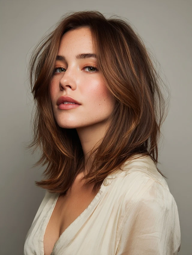 This mid-length option gives flexibility and low stress. Face-framing pieces soften the front, while long layers keep the back light.