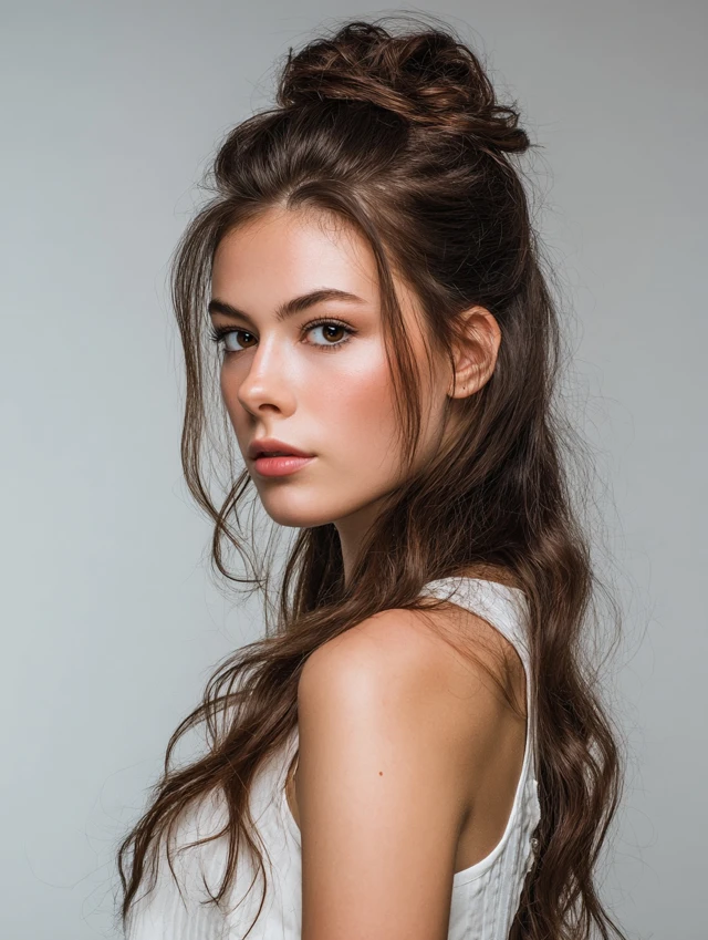 Pulling the top section back adds height and clears the face while keeping most hair loose. It works on almost every length past the chin.
