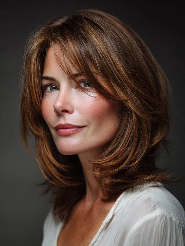 Layered shoulder-length haircuts for mature women strike the perfect balance between manageability and style. This length keeps hair light while offering enough shape to frame the face and soften features. Thoughtful layering adds movement, boosts volume at the crown, and prevents heavy ends from dragging the look downward. These cuts work across straight, wavy, and lightly curly textures, which makes them incredibly versatile. Whether worn sleek or softly tousled, layered shoulder-length styles refresh your appearance while keeping daily routines simple and stress-free.