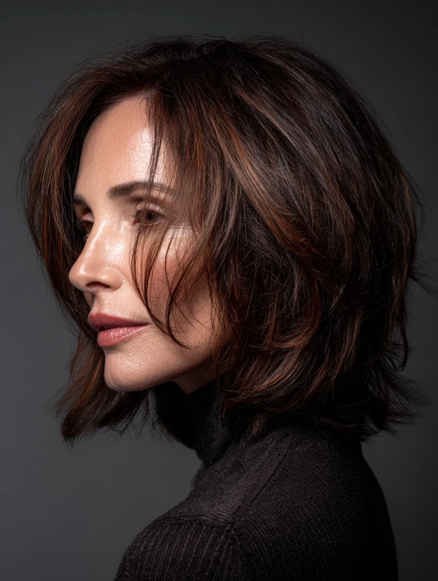 Layered shoulder-length haircuts for mature women succeed because they add volume, soften features, and adapt easily to daily life. With the right layering pattern, this length feels youthful, polished, and endlessly wearable.