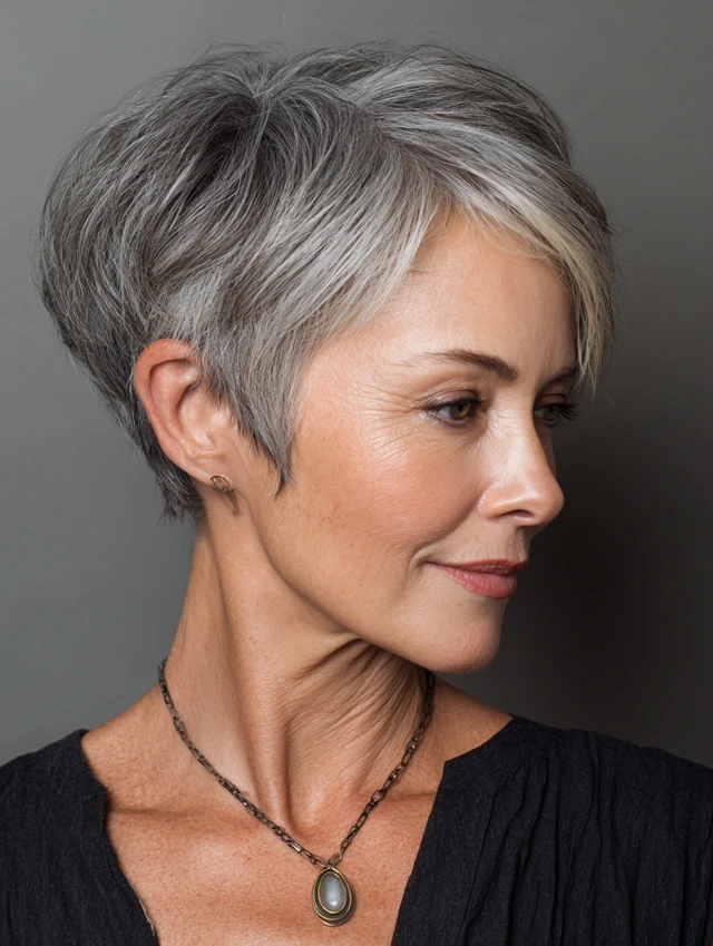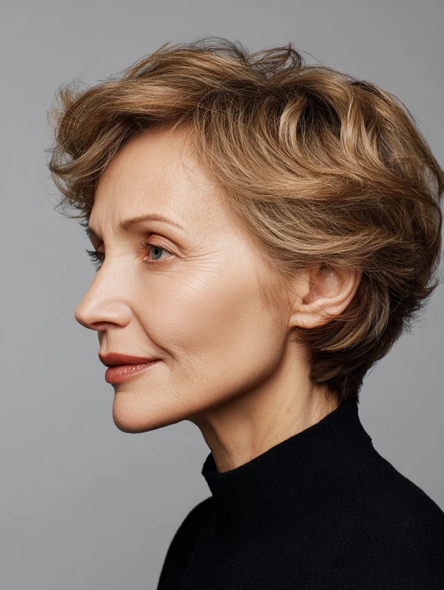 Short haircuts shine because they put structure front and center. Soft layering creates fullness where hair may thin, while tapered edges keep the look neat and intentional. These details lift facial features instead of weighing them down.