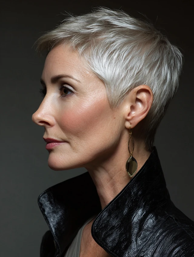 This pixie uses light layers at the crown and slightly longer pieces around the temples. It flatters oval and heart-shaped faces because it adds height without harsh edges. Fine hair gains volume, while thicker hair feels lighter and controlled.