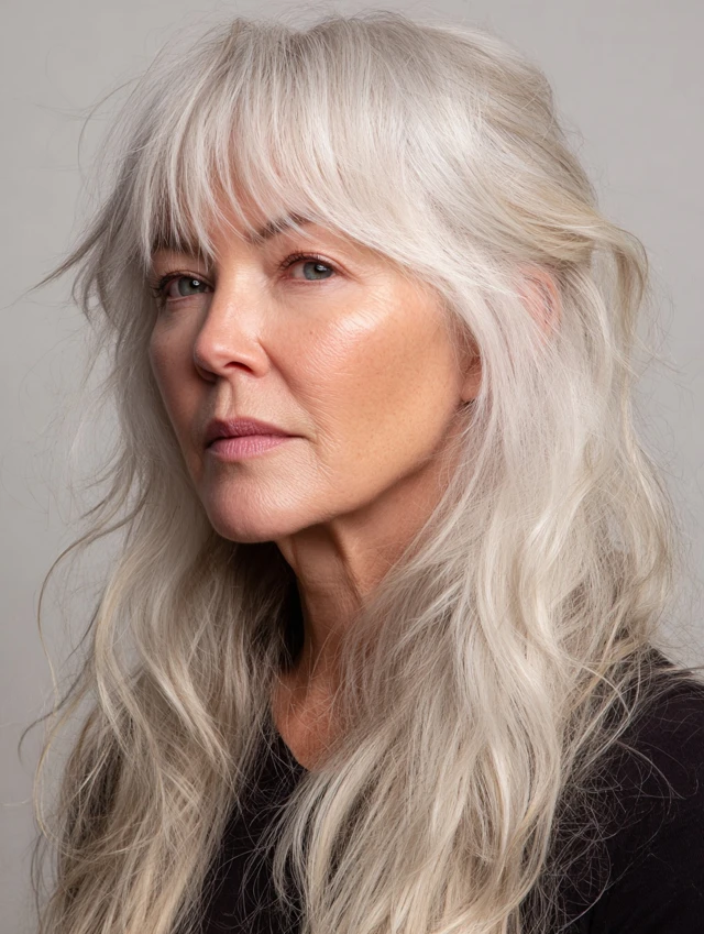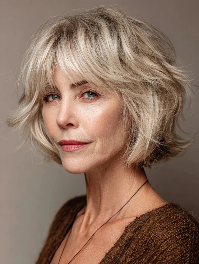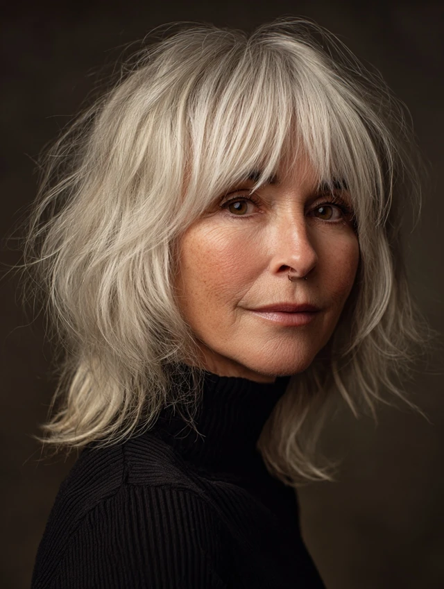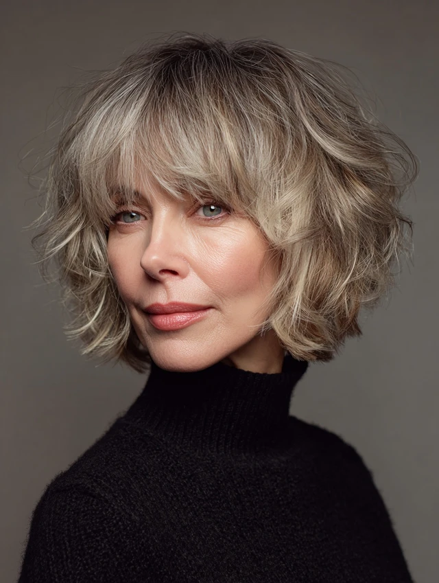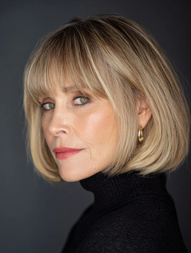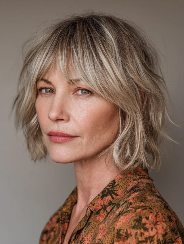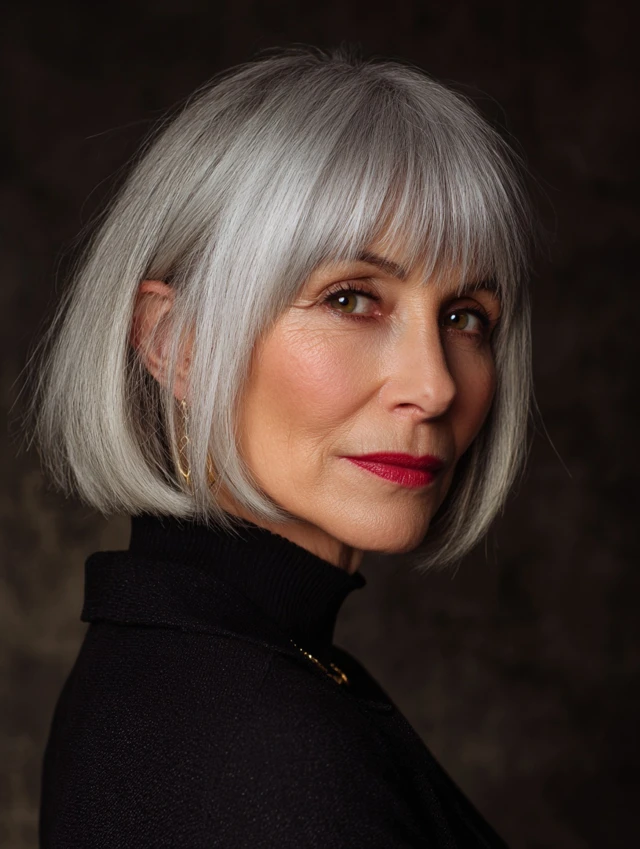 Curtain bangs for women over 50 offer one of the easiest ways to refresh a haircut without losing length or committing to heavy fringe. These parted bangs fall gently to each side of the face, blending into cheek- or jaw-length layers. They soften features, highlight cheekbones, and help disguise thinning near the temples or forehead lines. Many women love them because they grow out gracefully and style quickly. Whether paired with a bob, lob, or long layers, curtain bangs add polish while keeping the look relaxed and natural.