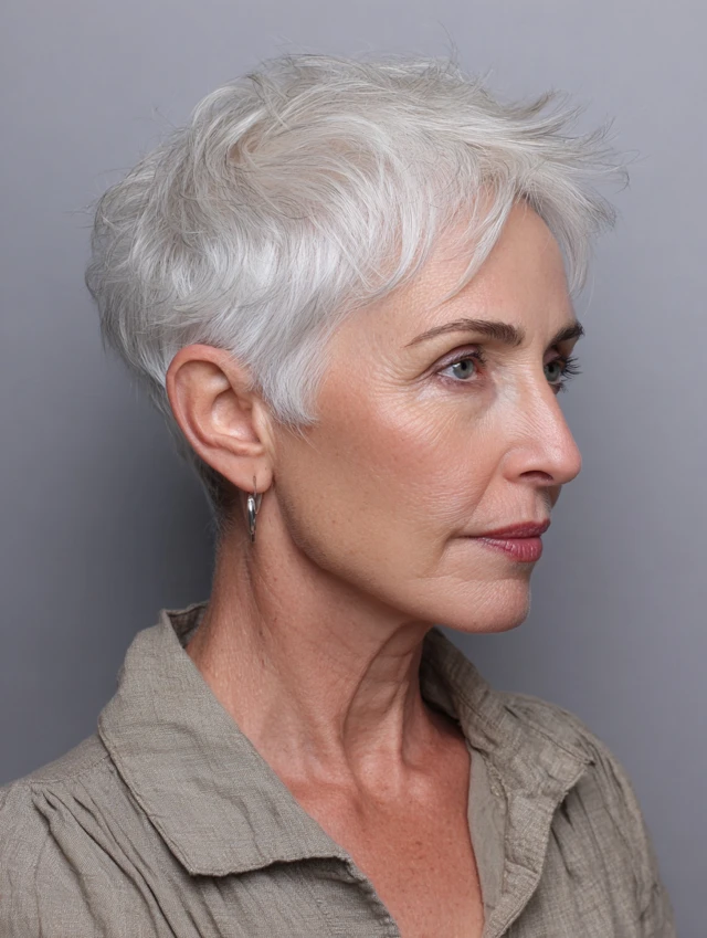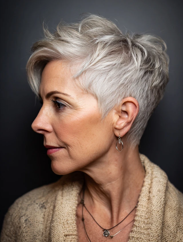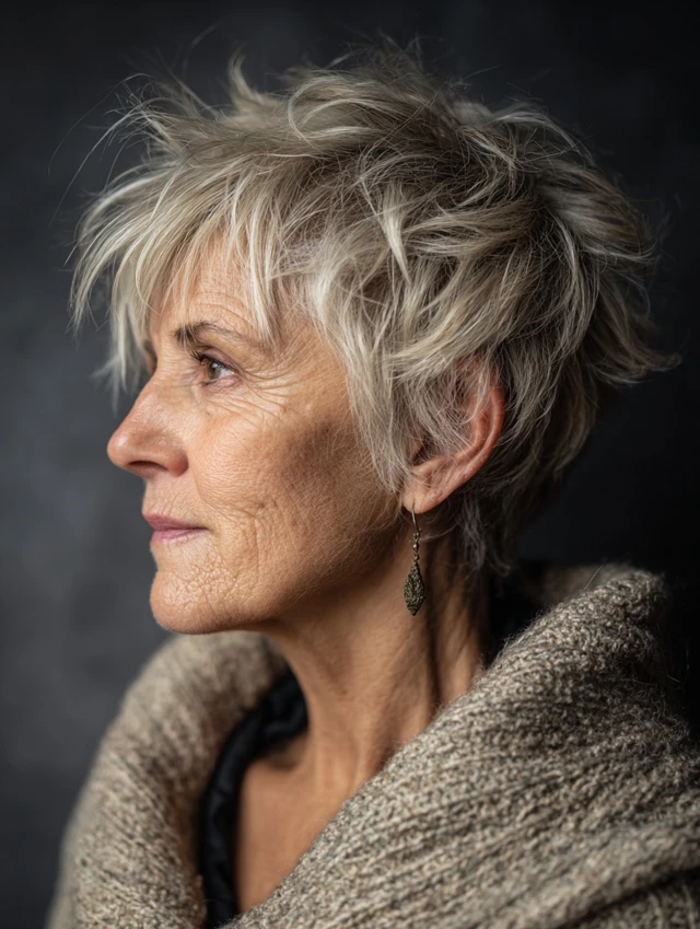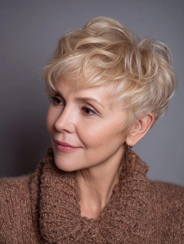 A textured pixie keeps the sides neat while leaving softness and lift on top. It highlights cheekbones and suits oval or heart-shaped faces especially well. Fine hair gains fullness from crown layers, while thick hair feels lighter.