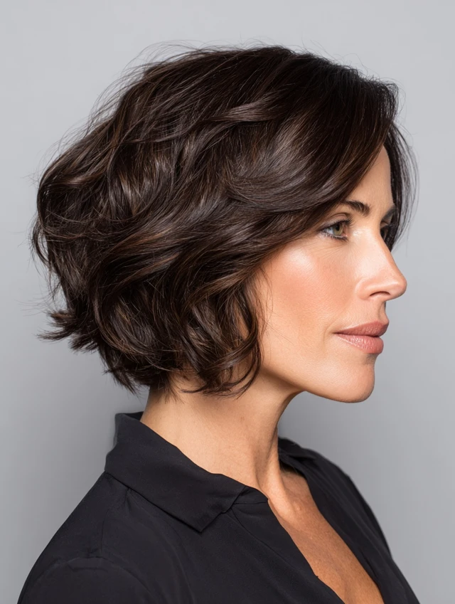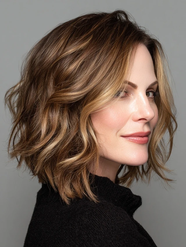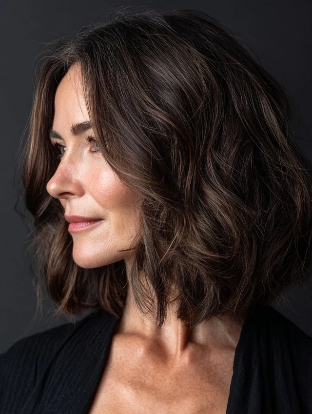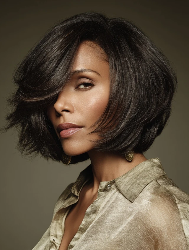 A layered bob around the jaw or collarbone offers polish with flexibility. It flatters round and square faces by lifting the crown and narrowing the sides. Fine hair benefits from subtle volume, while thicker hair feels lighter and controlled.