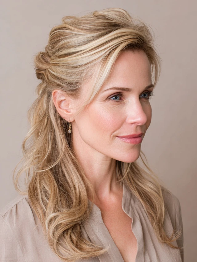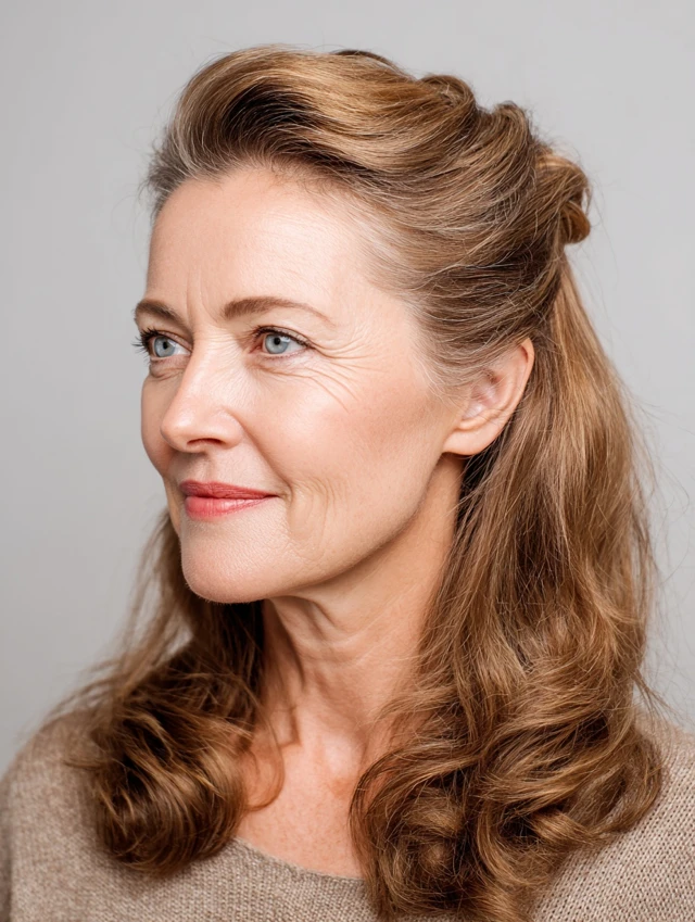 Pulling the top section back while leaving the rest loose keeps hair tidy without looking severe. It flatters longer faces by adding width at the temples and works on most textures.