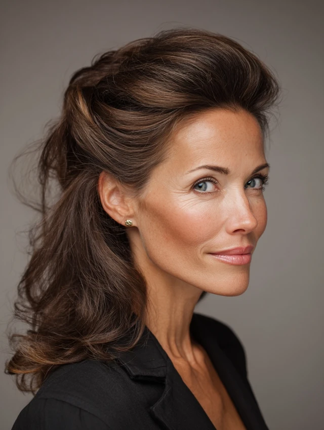 Tease the crown lightly before securing. Curl the loose hair for softness. This style transitions smoothly from office hours to dinner plans.