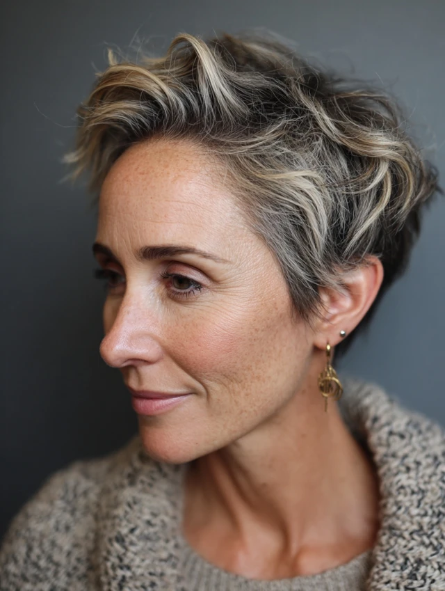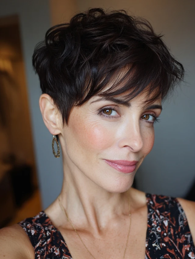 Why it works: Short cut emphasizes facial features and simplifies styling.