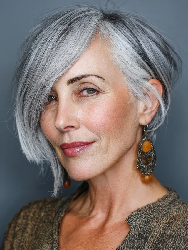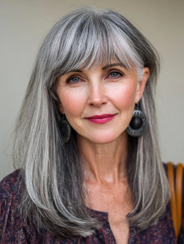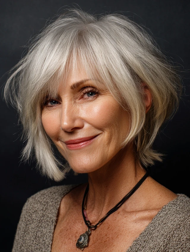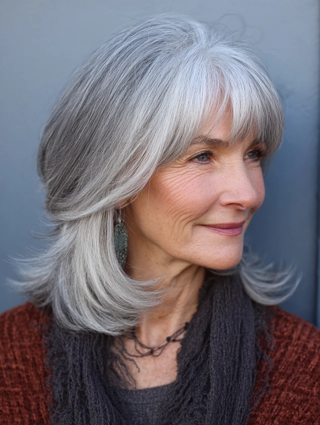 Soft and Flattering: Side-Swept Bangs for Older Women