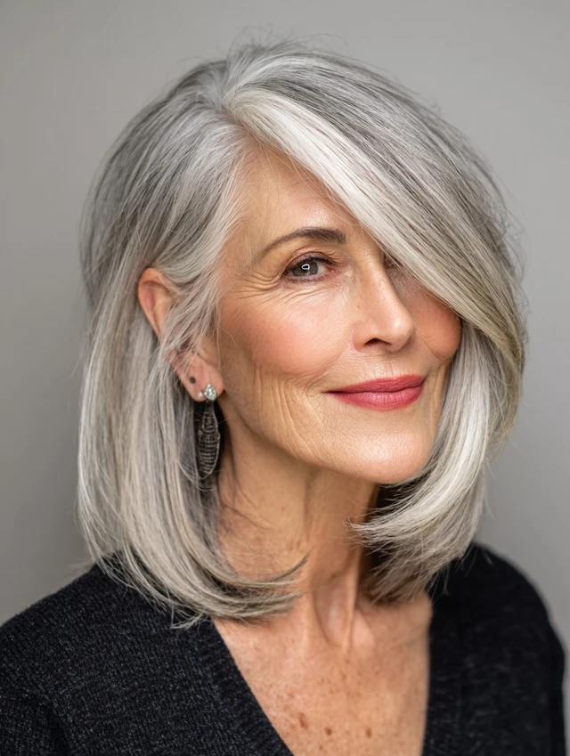 There’s something quietly sophisticated about side-swept bangs for older women. They soften the forehead, create gentle movement, and add a youthful lift to the face. When styled correctly, side-swept bangs balance features without requiring heavy styling or high maintenance.