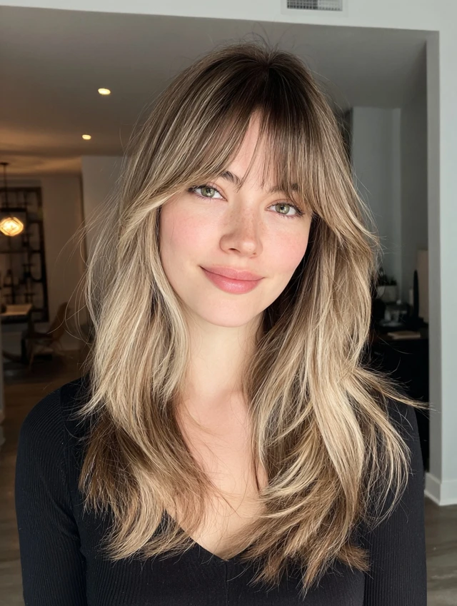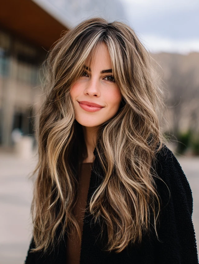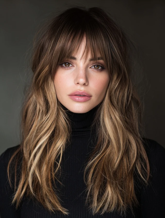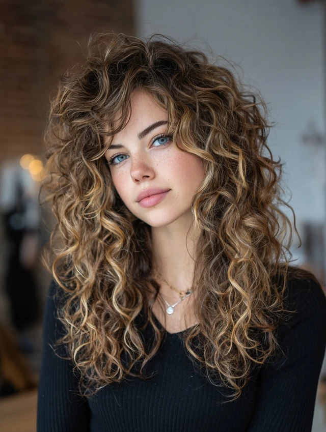 Would you lean toward a curly version, long face-framing layers, or soft curtain bangs? Do you prefer subtle brightness or more noticeable contrast through the ends?