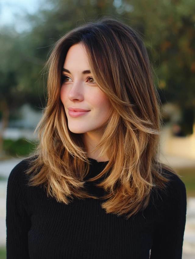 Ask your stylist to place lighter tones where layers move most. Keep the root area natural so grow-out stays soft. Choose blended layering rather than sharp disconnects. Match the length to your routine so styling stays realistic. Use one texture-boosting product instead of several. Trim the crown regularly so volume stays controlled while the color keeps looking intentional.