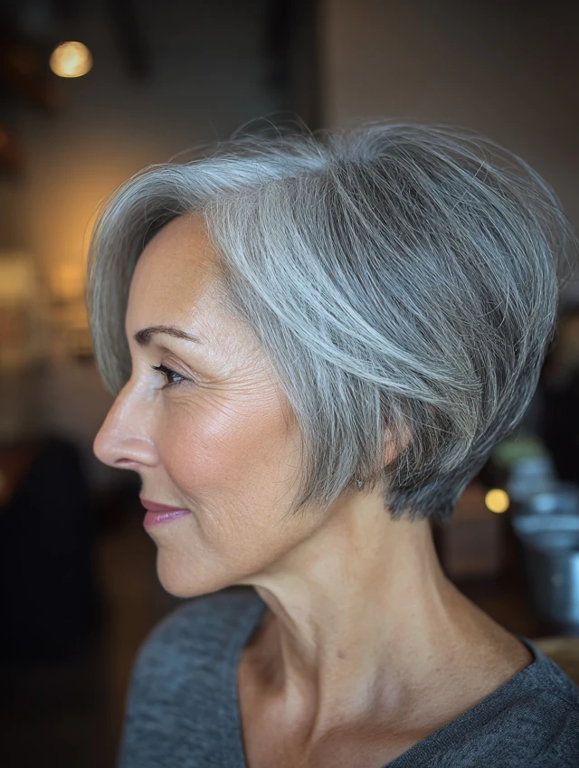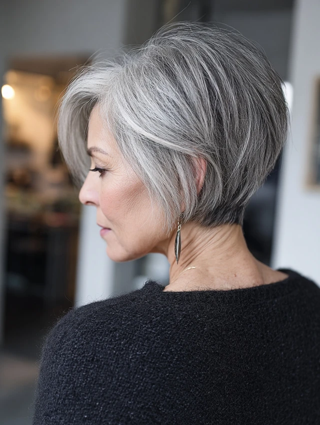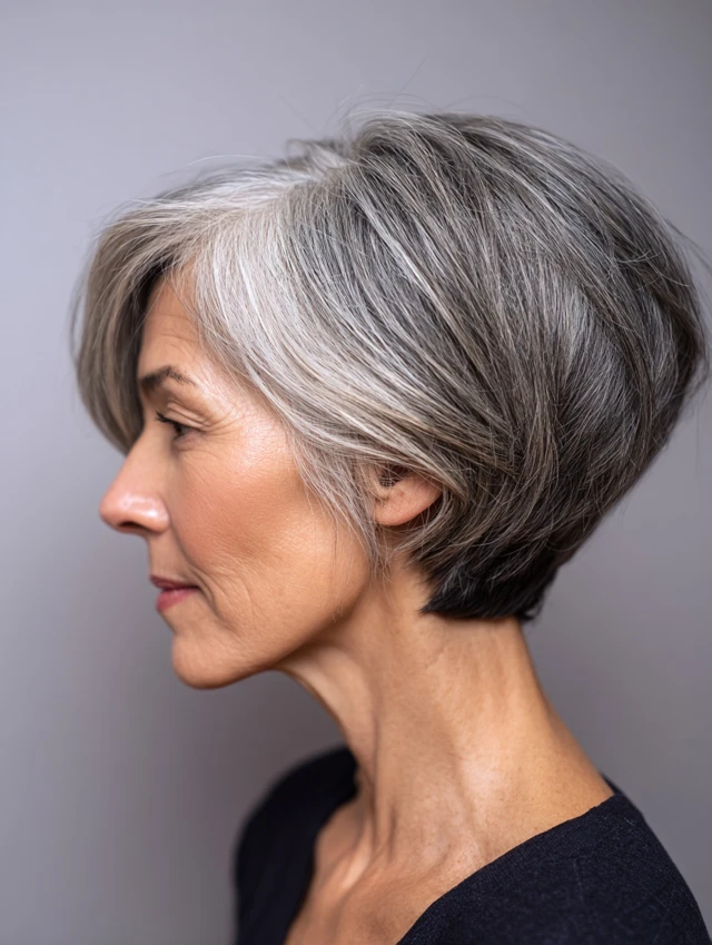 Fine textures benefit from the redistribution of weight. Blow-dry the back briefly for lift, then smooth the front. It fits professional days and social events easily. Regular trims every six to eight weeks maintain shape and encourage steady progress toward full gray.