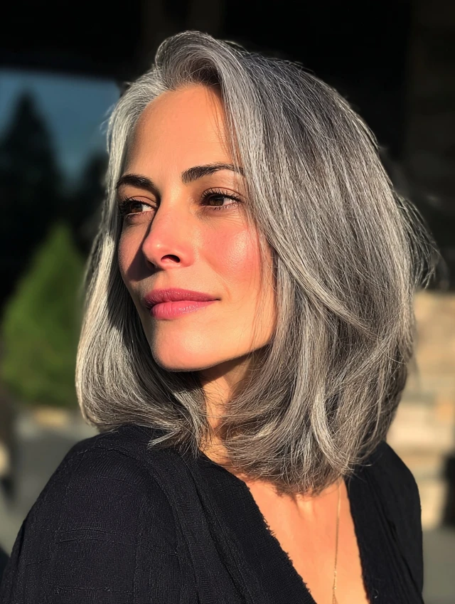 Gray hair transition hairstyles for women focus on blending regrowth gracefully while keeping the look intentional and flattering. Growing out natural gray can feel awkward at first, especially when old color lines appear harsh or uneven. The right haircut softens contrast, adds movement, and makes each stage feel stylish instead of frustrating. These looks rely on layers, strategic length, and smart shaping rather than constant recoloring. They fit busy routines and evolving textures while supporting healthier hair long term. A thoughtful transition style helps you feel confident at every phase of the journey.