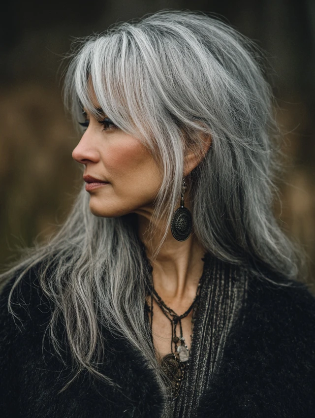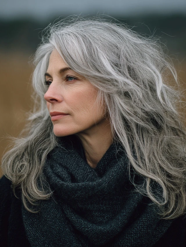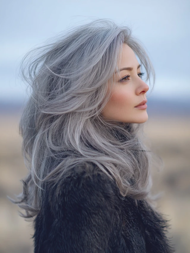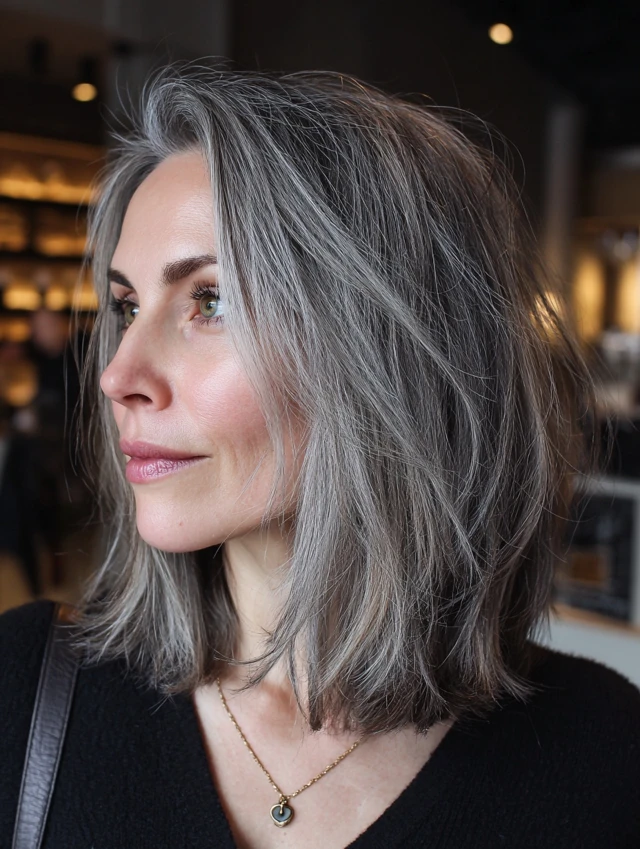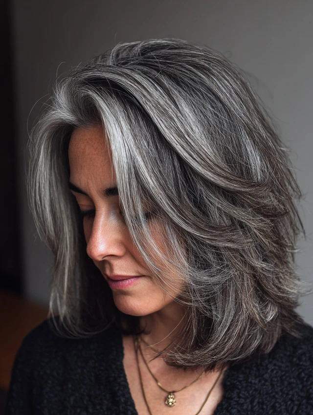 Soft layers and flexible shapes blur the line between dyed ends and new gray growth. Gray hair transition hairstyles for women often avoid blunt edges that highlight color changes. Instead, they use movement, texture, and face-framing sections to distract the eye.