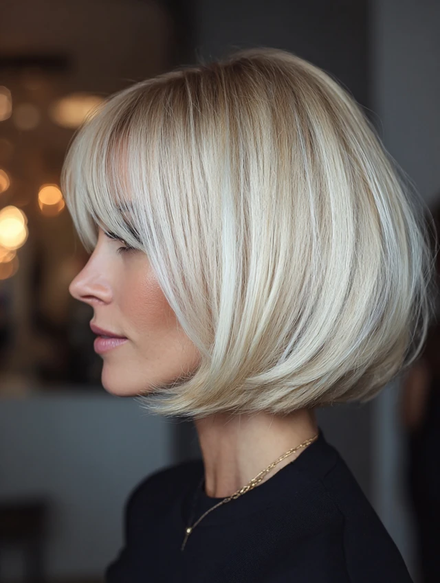 5. Blonde Bob with Side-Swept Bangs