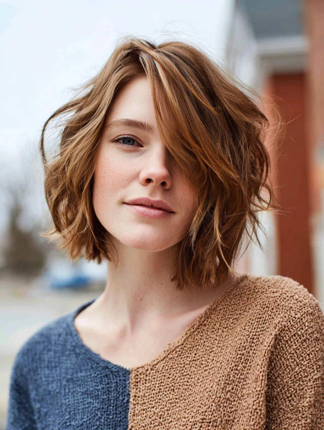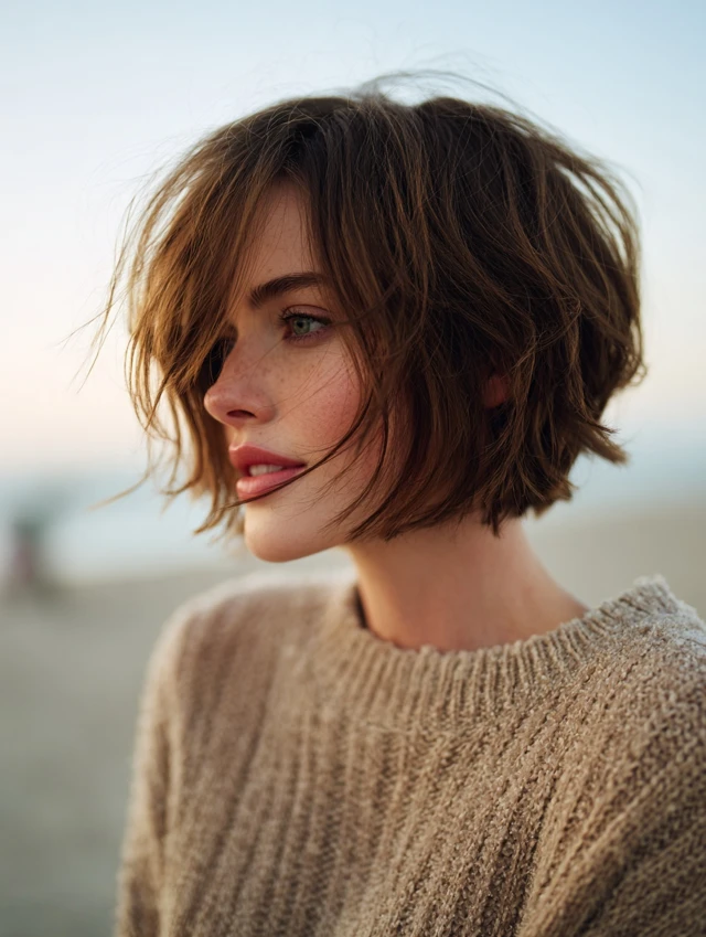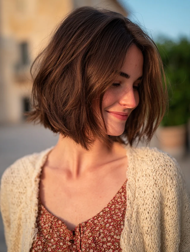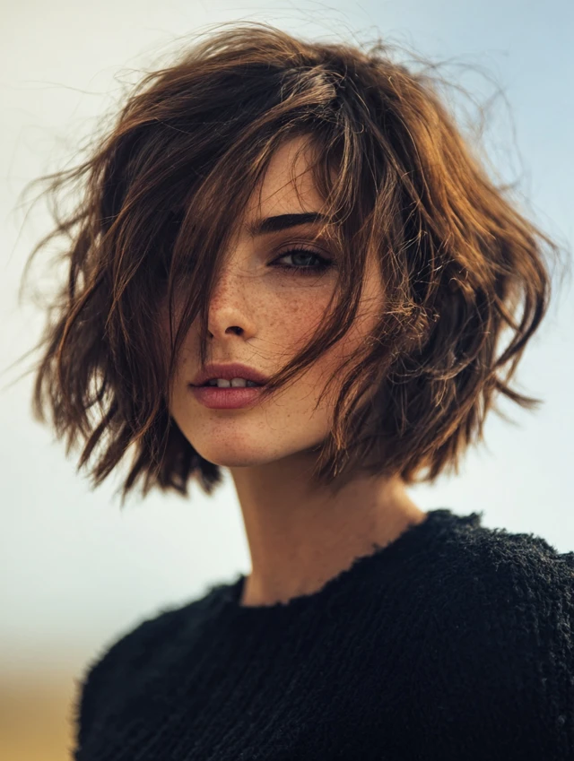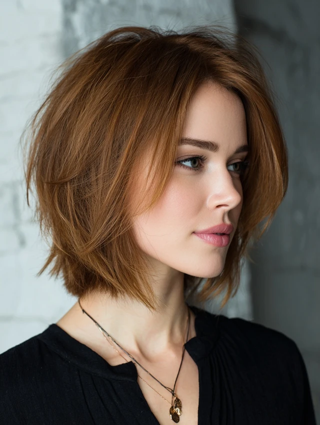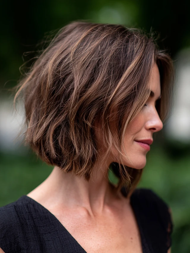 A textured bob introduces movement that helps thinning hair appear thicker overall. Subtle choppy sections create separation between strands, which tricks the eye into seeing more volume. The texture also prevents the hair from clinging to the scalp around the crown.