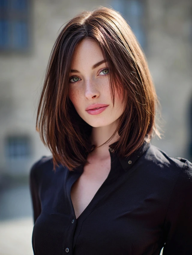 A blunt bob with lightly softened ends creates the illusion of density by keeping weight at the perimeter. Unlike heavily layered cuts, this shape avoids wispy tips that make thinning hair look sparser. The gentle softening prevents the line from feeling harsh while still delivering fullness.