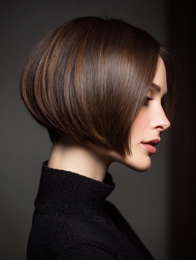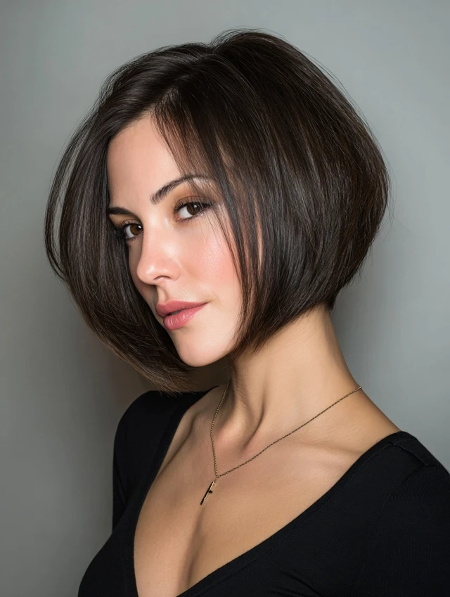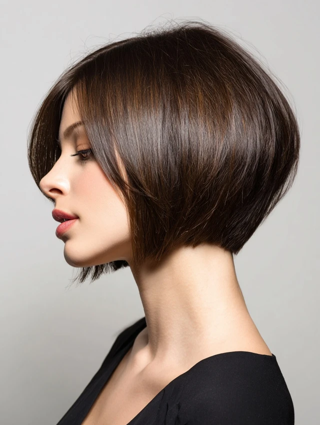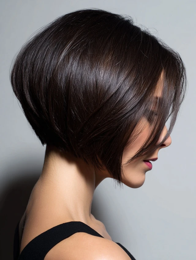Straight to wavy textures show this shape clearly. Dry the back first with a brush to lock in height, then smooth the front lightly. This style suits professional settings and daily wear. Regular shaping keeps the stacked silhouette intact.