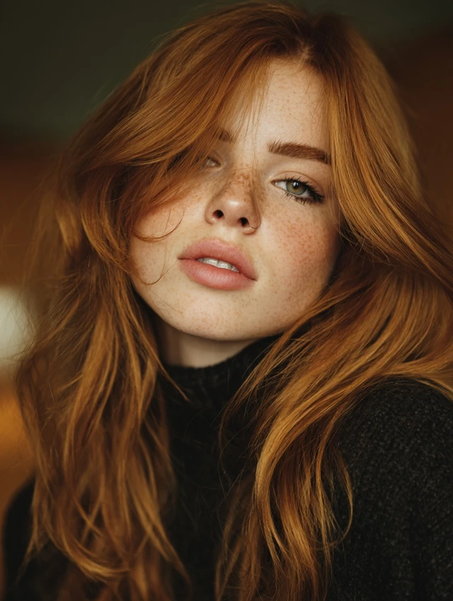 Ginger brunette adds copper warmth over a brown base instead of going fully red. The result feels spicy but controlled. Soft highlights through the mid-lengths enhance shine and prevent the shade from reading flat.
