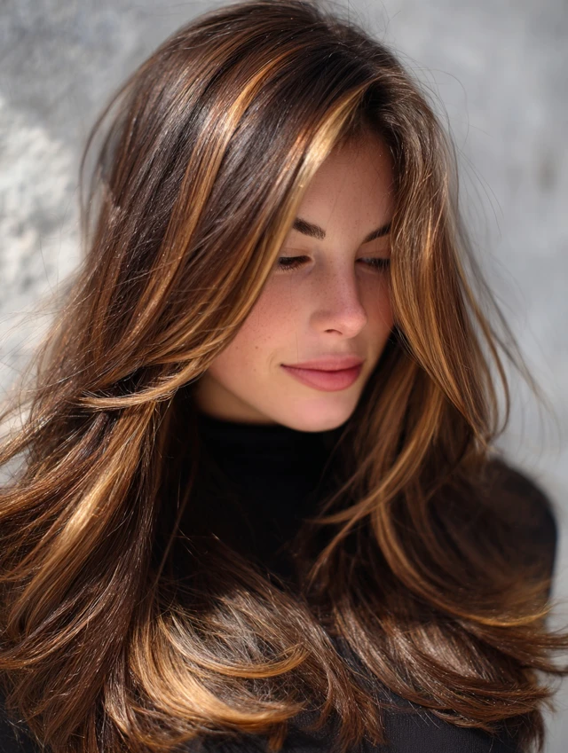 This trend works for medium to thick hair and suits most skin undertones. Styling stays simple because dimension shows even when air-dried. It fits office life, travel days, and people seeking warmth without red tones.