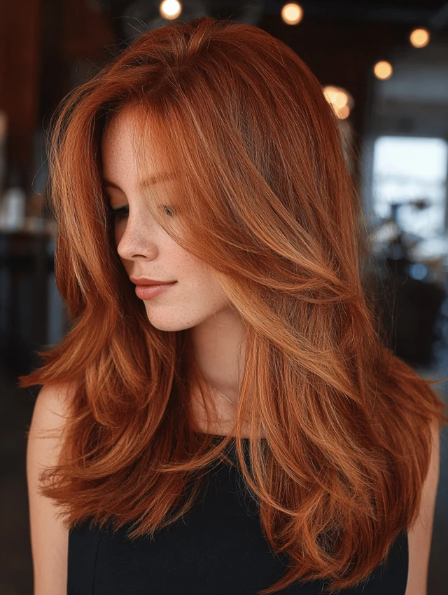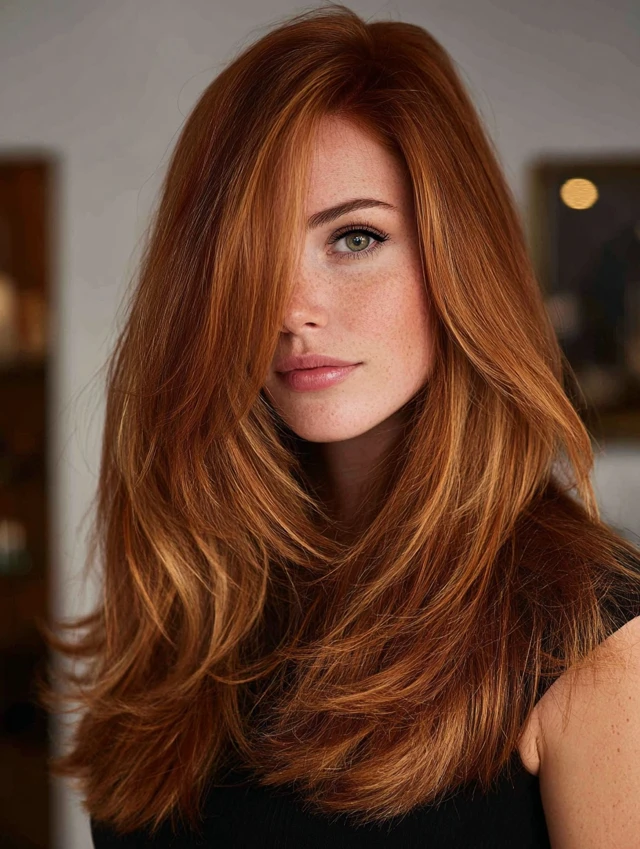 This color flatters warm and neutral undertones best. Maintenance stays manageable with gloss refreshes. It works well for layered cuts, waves, and textured styles where light can catch the warmth naturally.