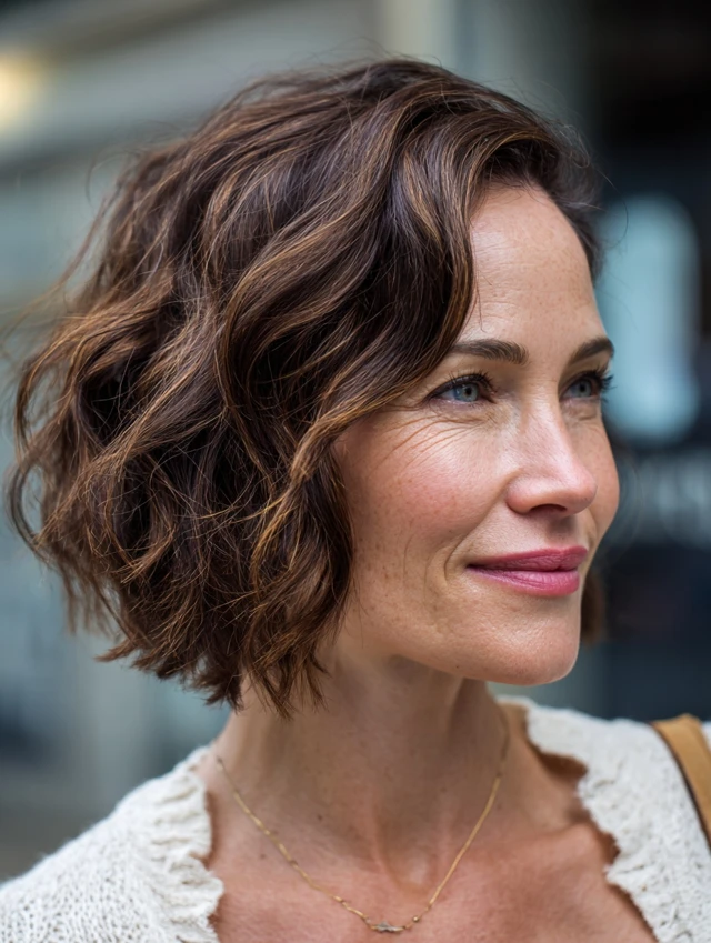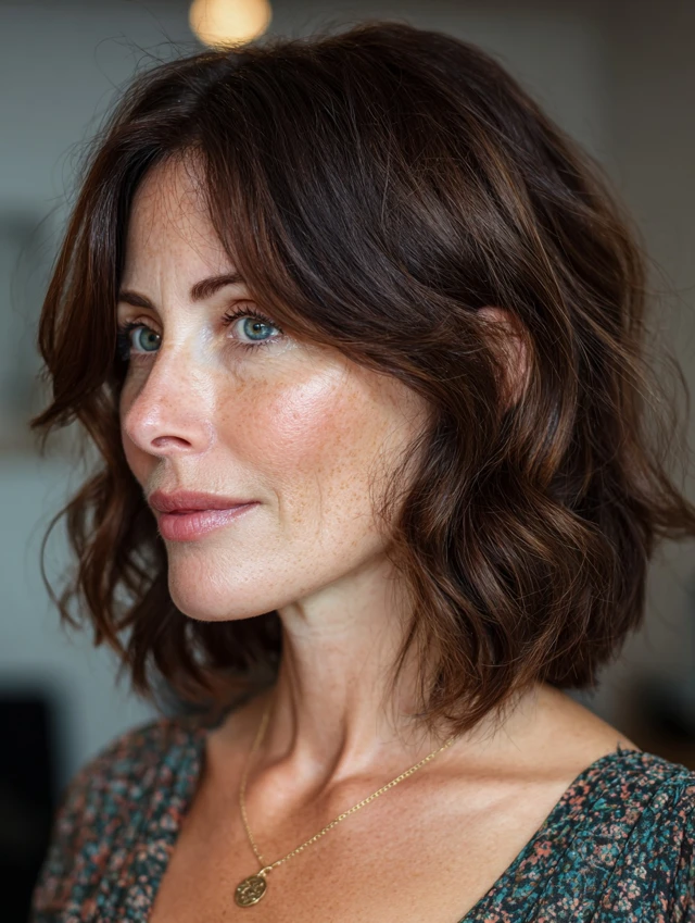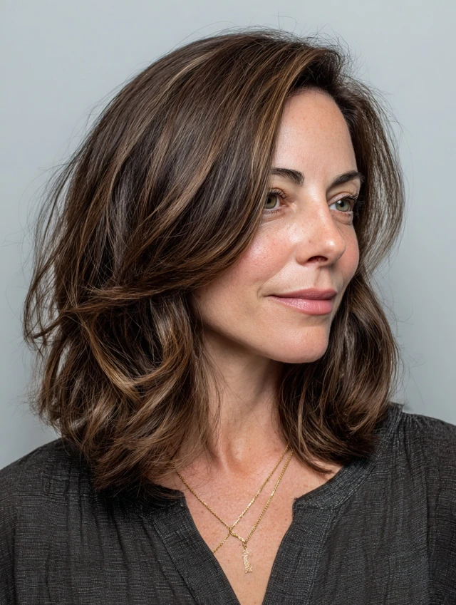 This haircut works well for wavy or medium-thick hair that needs shape without daily heat tools. Scrunch in a light mousse and air-dry for casual days. It fits active lifestyles because it grows out gracefully. Many women love it for travel since the layers fall into place with minimal effort.