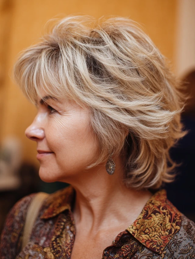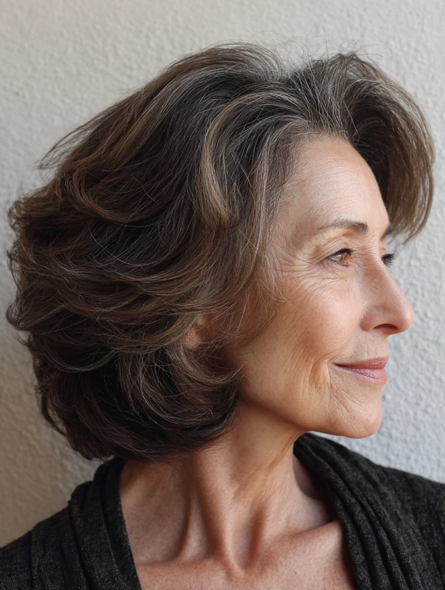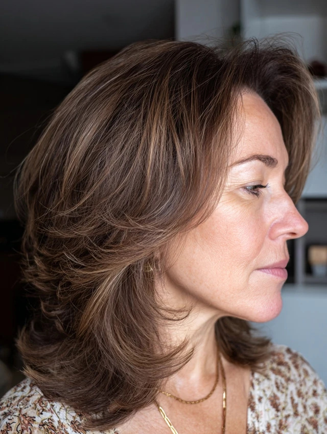 Medium length hairstyles for older women work because they avoid the heaviness of very long hair while offering more versatility than short crops. Strategic layering adds lift at the crown and prevents flat sections around the sides. This keeps the silhouette balanced and youthful.