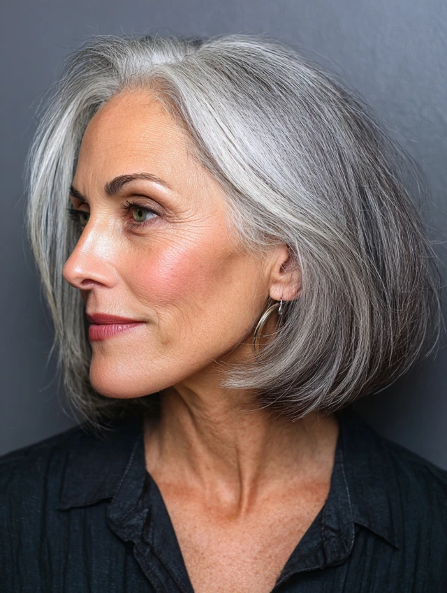 This style suits straight, wavy, or loosely curly hair. Blow-dry quickly with a round brush or let it air-dry using smoothing cream. It fits daily errands, social gatherings, and appointments easily. Trims every eight weeks keep the shape fresh without constant upkeep.