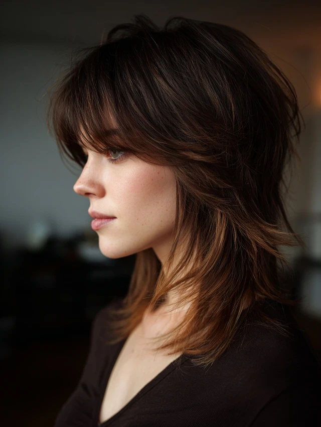 Mid-Length Mullet Wolf Cut with Side Part