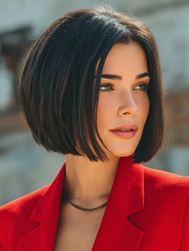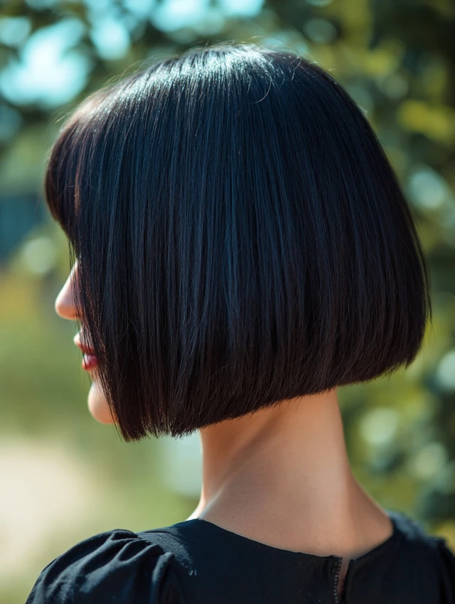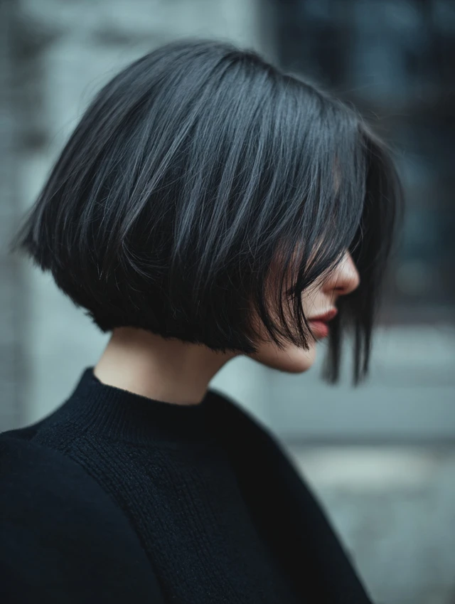 A blunt razor bob keeps the perimeter crisp while hiding feathered slicing inside the cut. From a distance, it reads polished. Up close, it moves freely. That contrast gives the hairstyle a refined yet relaxed feel.