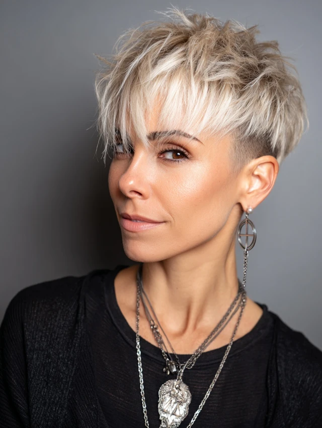 Tousled or spiky top with shaved sides creates a youthful, edgy vibe.