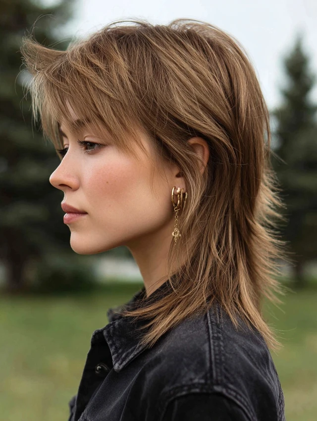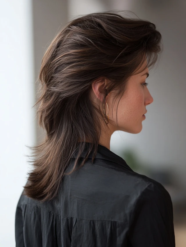 This style fits medium-density hair across most textures. Air-dry cream or light blow-drying keeps things neat. It works for everyday wear, creative offices, and people testing the mullet trend cautiously.