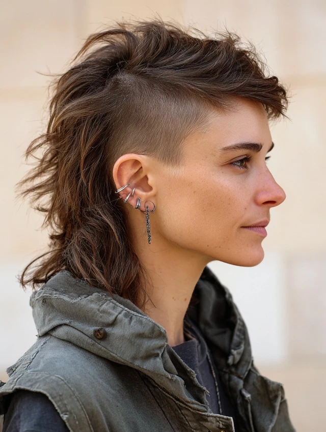 This version suits thick hair and straight to wavy textures. Styling takes minutes using matte paste or sea-salt spray. It works for fashion-forward looks, nights out, and anyone comfortable with standout hair.