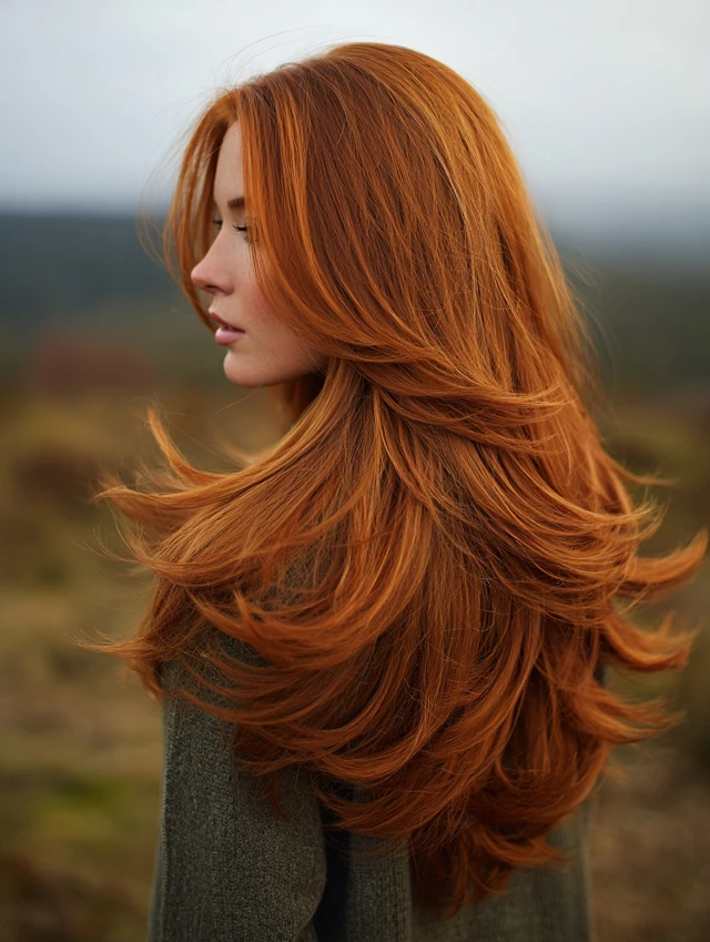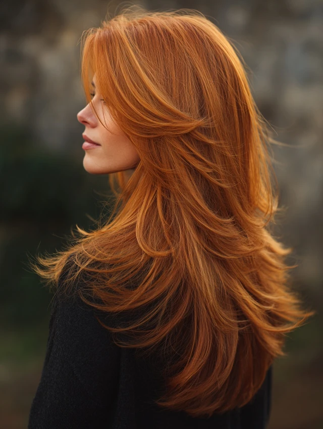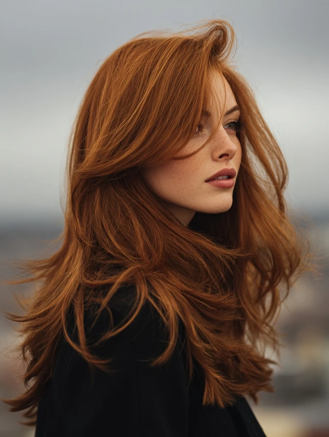 Choose a ginger tone that complements your undertone. Ask for blended layers so the color flows naturally through the cut. Keep bangs light and adjustable. Use color-safe shampoo to maintain vibrancy. Avoid heavy products that flatten the crown. Trim regularly to keep the layered shape sharp and defined.