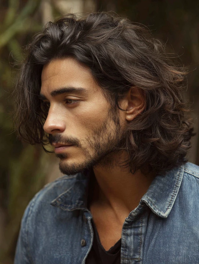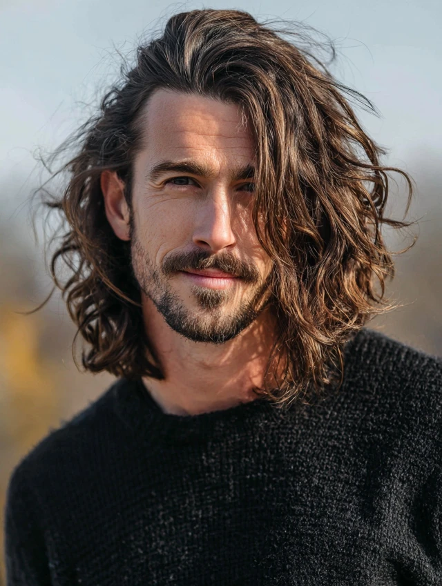 This style suits medium to thick hair with wave or loose curl. Styling stays simple using leave-in conditioner or sea-salt spray. It fits beach days, casual offices, and men who prefer relaxed grooming.