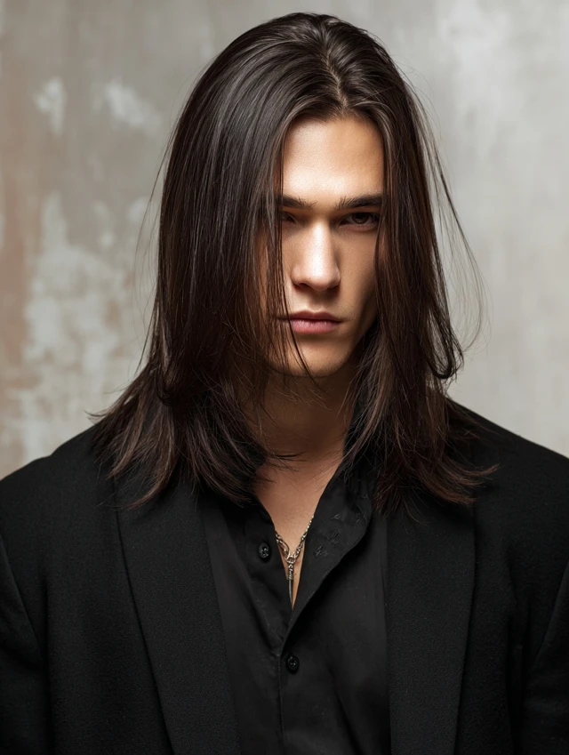 Straight long hair with a center part relies on clean lines and light layering for balance. The part frames the face evenly, while tapered ends prevent the look from feeling flat or severe. The result reads controlled rather than messy.