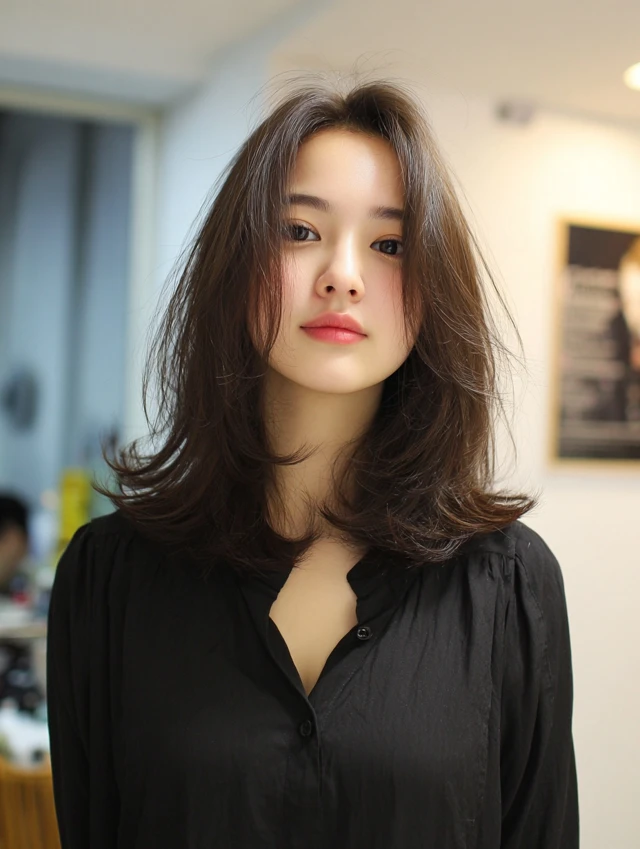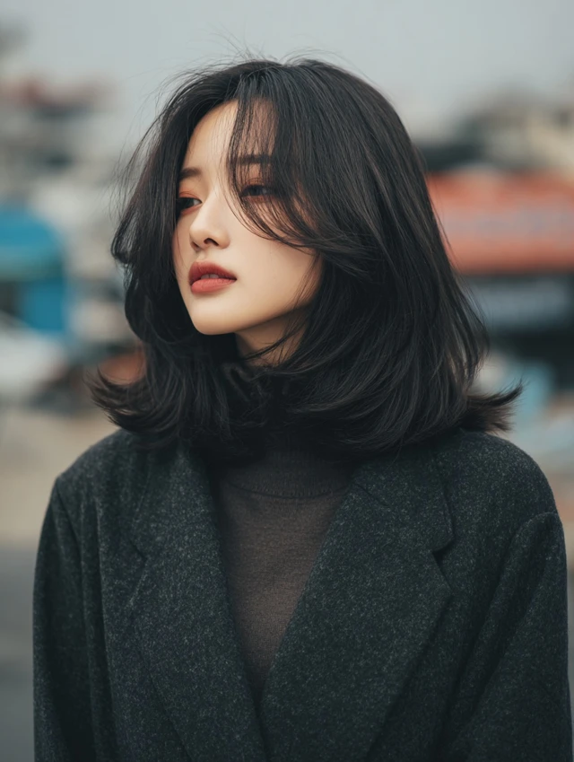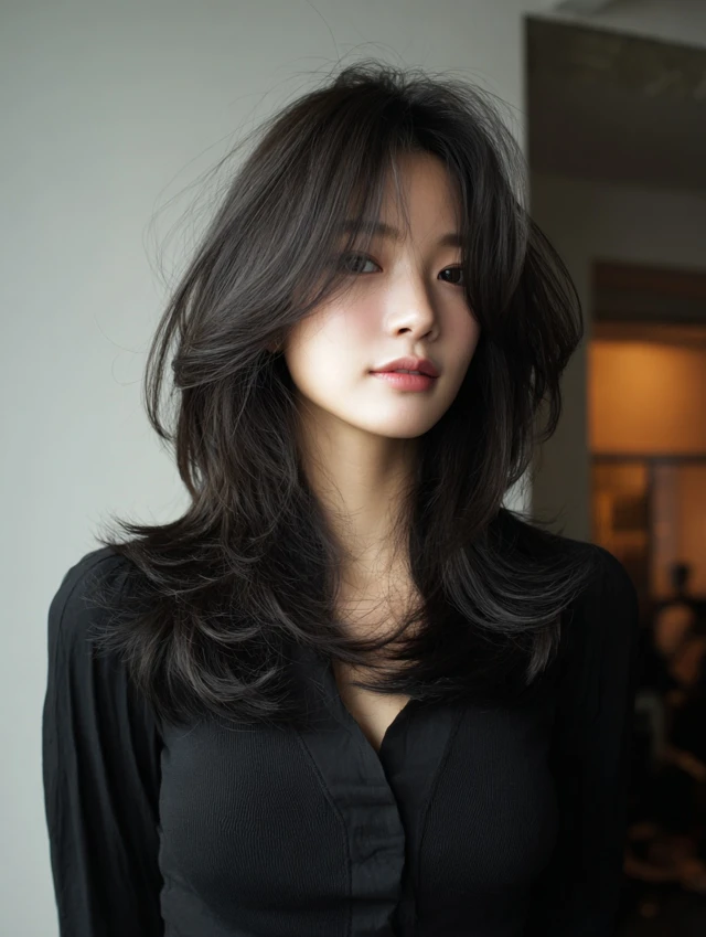 Korean hairstyles for women succeed because they rely on subtle shaping instead of dramatic contrast. Light layers add movement without removing too much density. See-through bangs soften the forehead while keeping the face open.