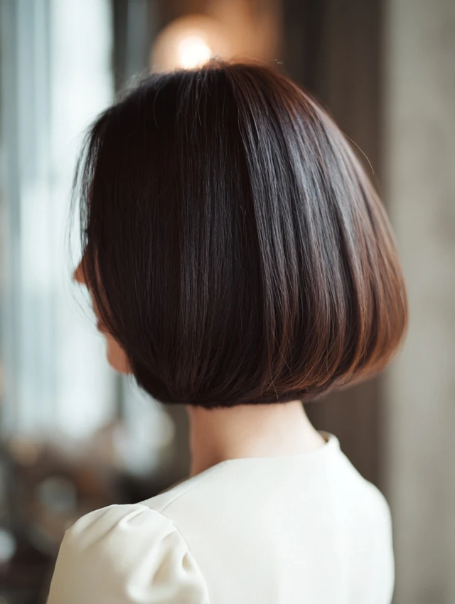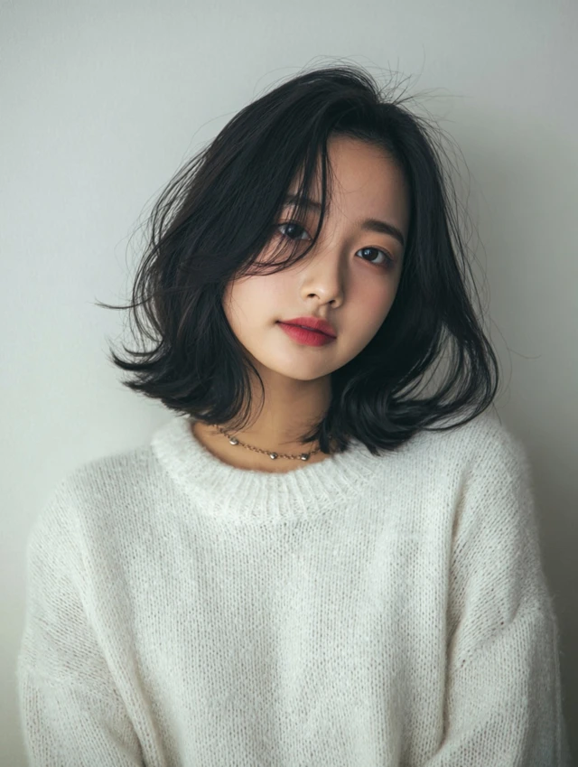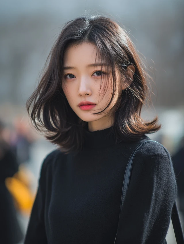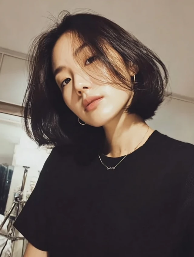 A Korean soft bob keeps the perimeter neat while adding minimal layering for natural bounce. The ends curve inward gently to frame the jawline. The shape looks structured yet light.