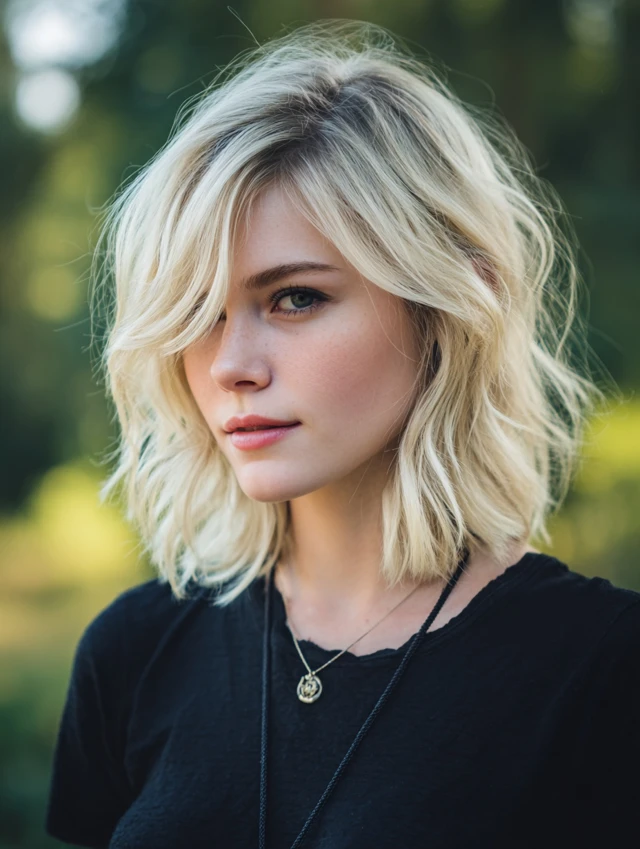 A wavy long angled bob softens the geometry using feathered layers and loose bends. The waves blur the line just enough to feel relaxed while keeping the angled outline visible. Crown volume prevents the back from looking flat.