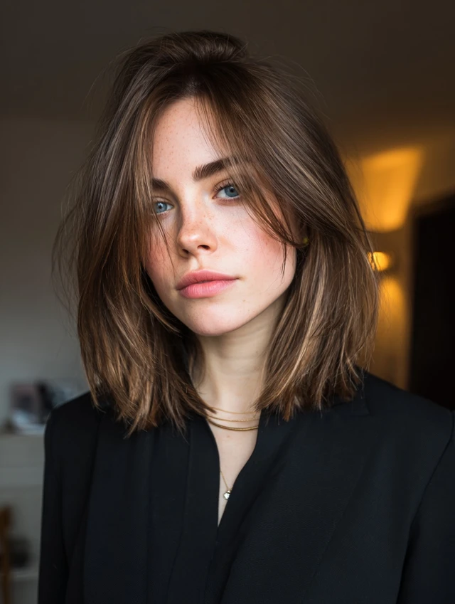 This version suits straight to slightly wavy hair with medium density. Styling focuses on flat-ironing or round-brushing for polish. It works for offices, evening events, and people who like a refined look.