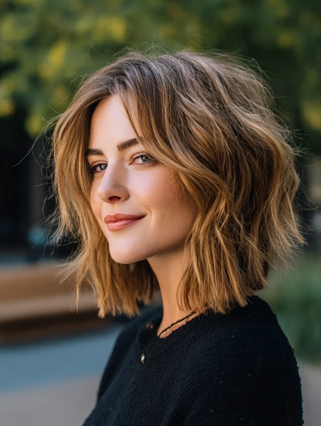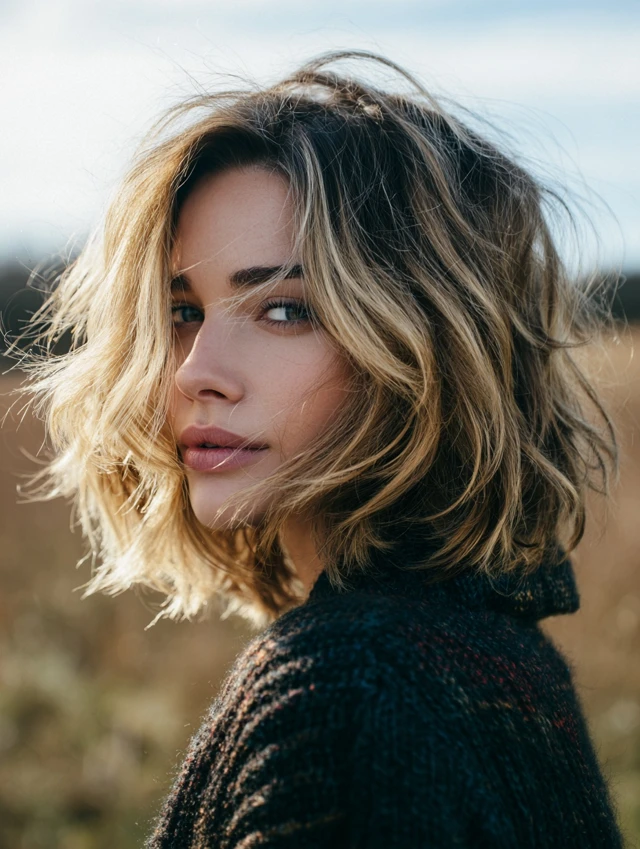 This style fits medium-density hair with natural wave. Diffusing or curling takes minutes. It works for everyday wear, travel days, and casual outfits that still need shape.