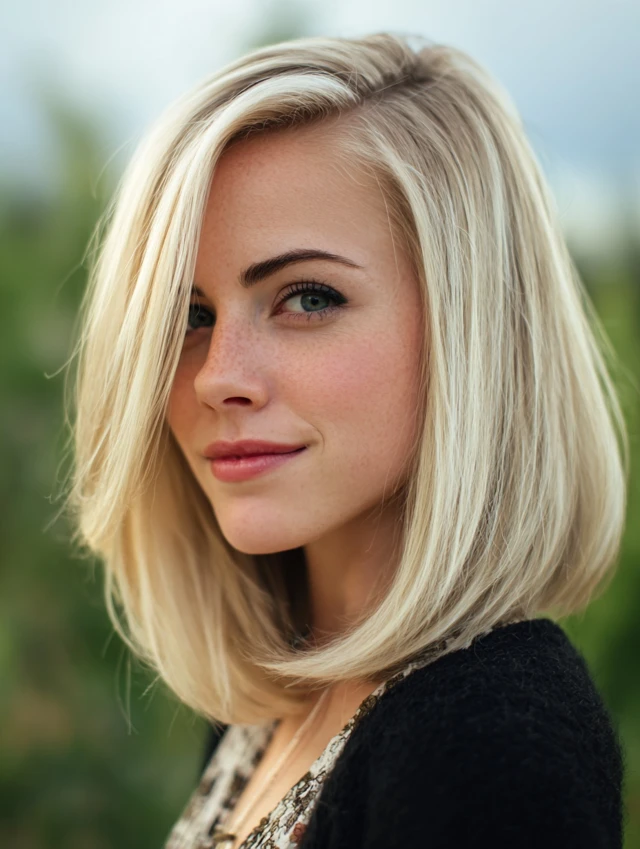 Long angled bobs succeed because the diagonal line draws the eye downward and forward, which slims the face visually and highlights cheekbones. The shorter back adds lift at the crown, while longer front sections soften the jaw. This balance keeps the cut bold but approachable.
